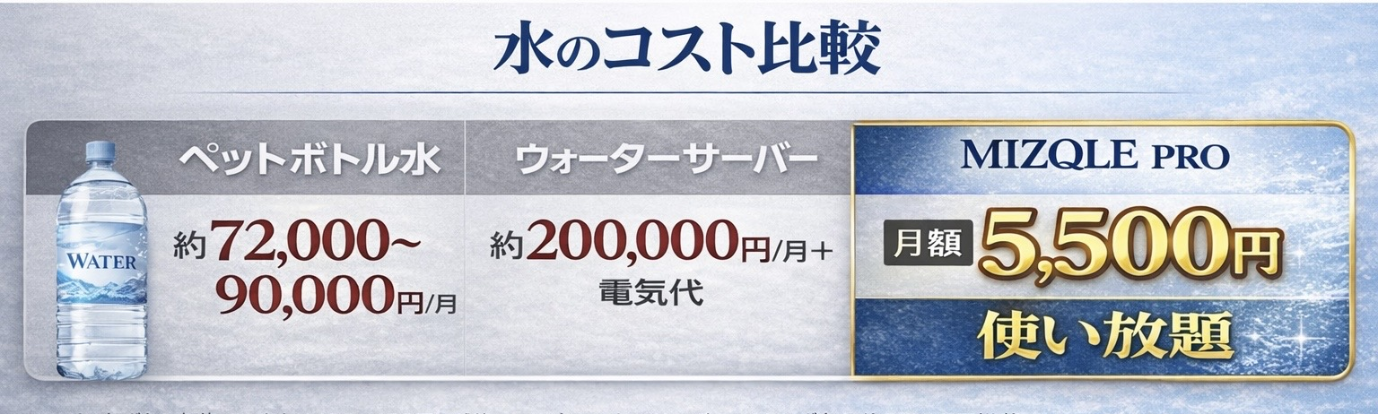 | 比較 | 市販浄水器 | MIZQLE |